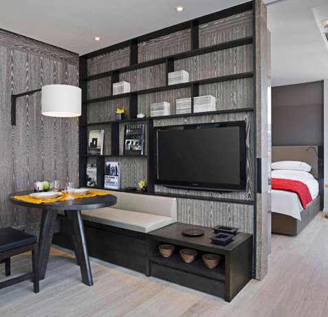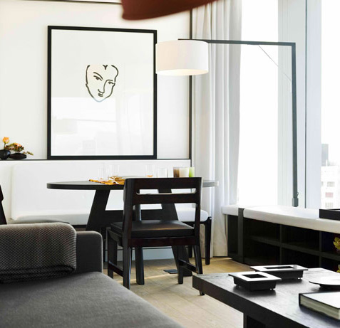 Suites, which are entered via private lift lobbies, feature large windows that invite abundant natural light. Interior design by Christian Liaigre emphasizes simplicity, elegance, and comfort. The warm tones of fine wood, leather and fabric and luxurious marble finishes bring subtle textures throughout the interiors. Custom designed furnishings, lighting and wall panelling reflect Mr. Liaigre's mastery of creating living environments that are as beautiful as they are functional.